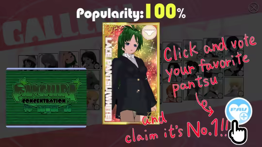 In Gallery Mode, you can vote your favorite pantsu and know its popularity.