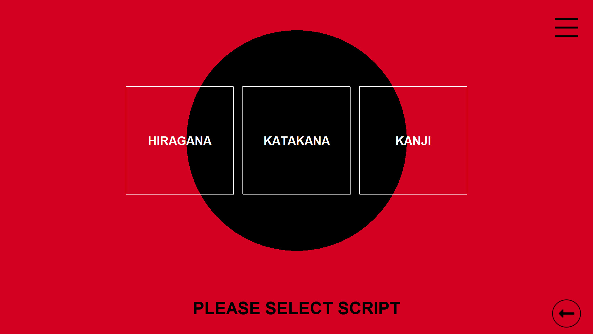 - Selection of five to ten characters per game, taken from one of the hiragana, katakana, or kanji tables.