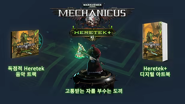 - 이단적인 느낌을 주는 완전히 새로운 Heretek+ 전용 9분 이상의 음악 트랙으로 Omnissiah Edition의 오리지널 사운드트랙을 확장하세요.