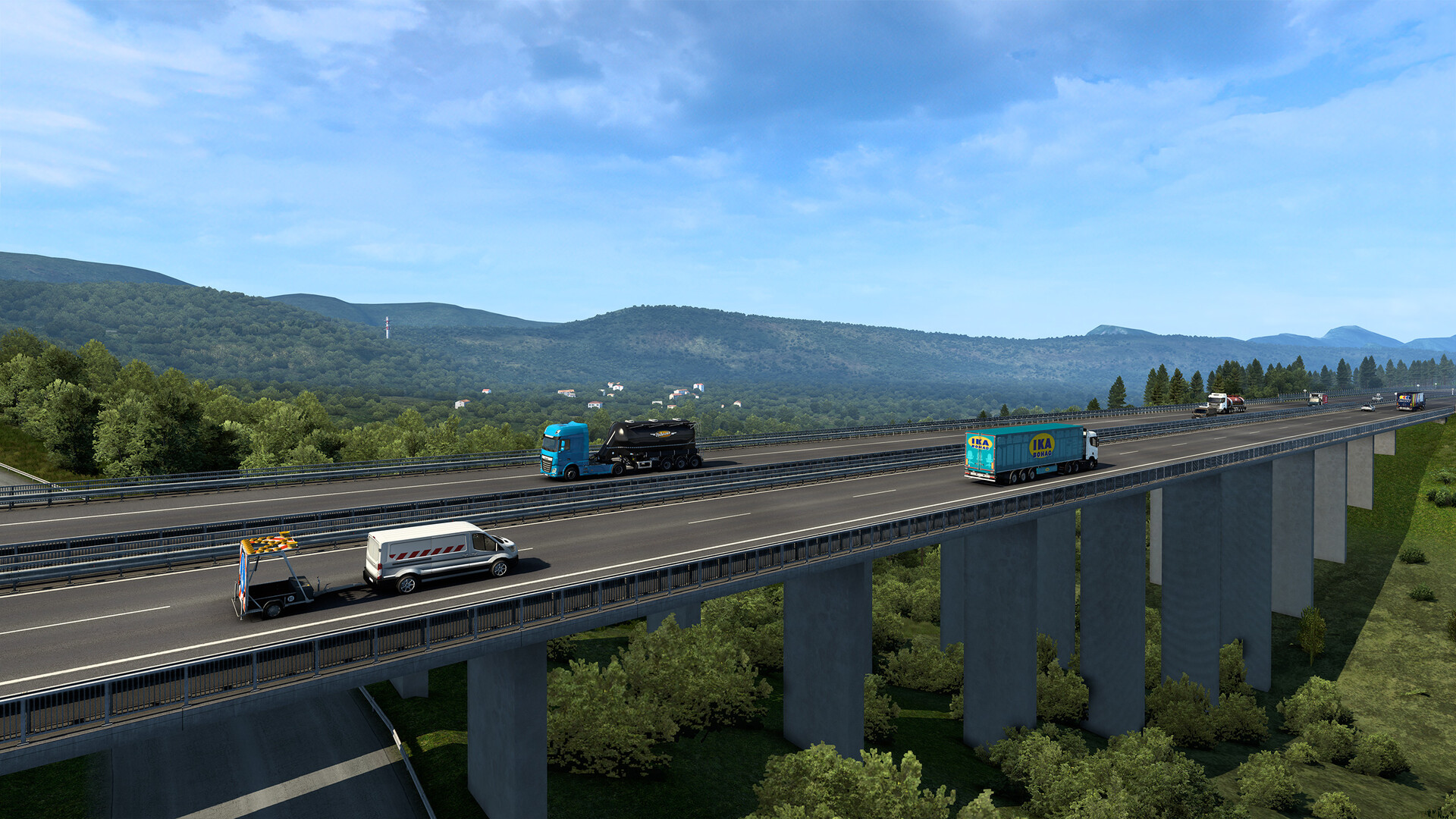 Road to the Black Sea은 3개의 새로운 유럽 지역을 제공합니다. 운전자는 회사를 확장하고 트란실바니아의 삼림 지역과 주변 카르파티아 산맥으로 유명한 국가 루마니아, 다양한 지형과 흑해 해안선을 가진 불가리아, 유럽 최대 도시 이스탄불의 관문인 튀르키예의 트라키아 지역으로 배송할 수 있습니다.