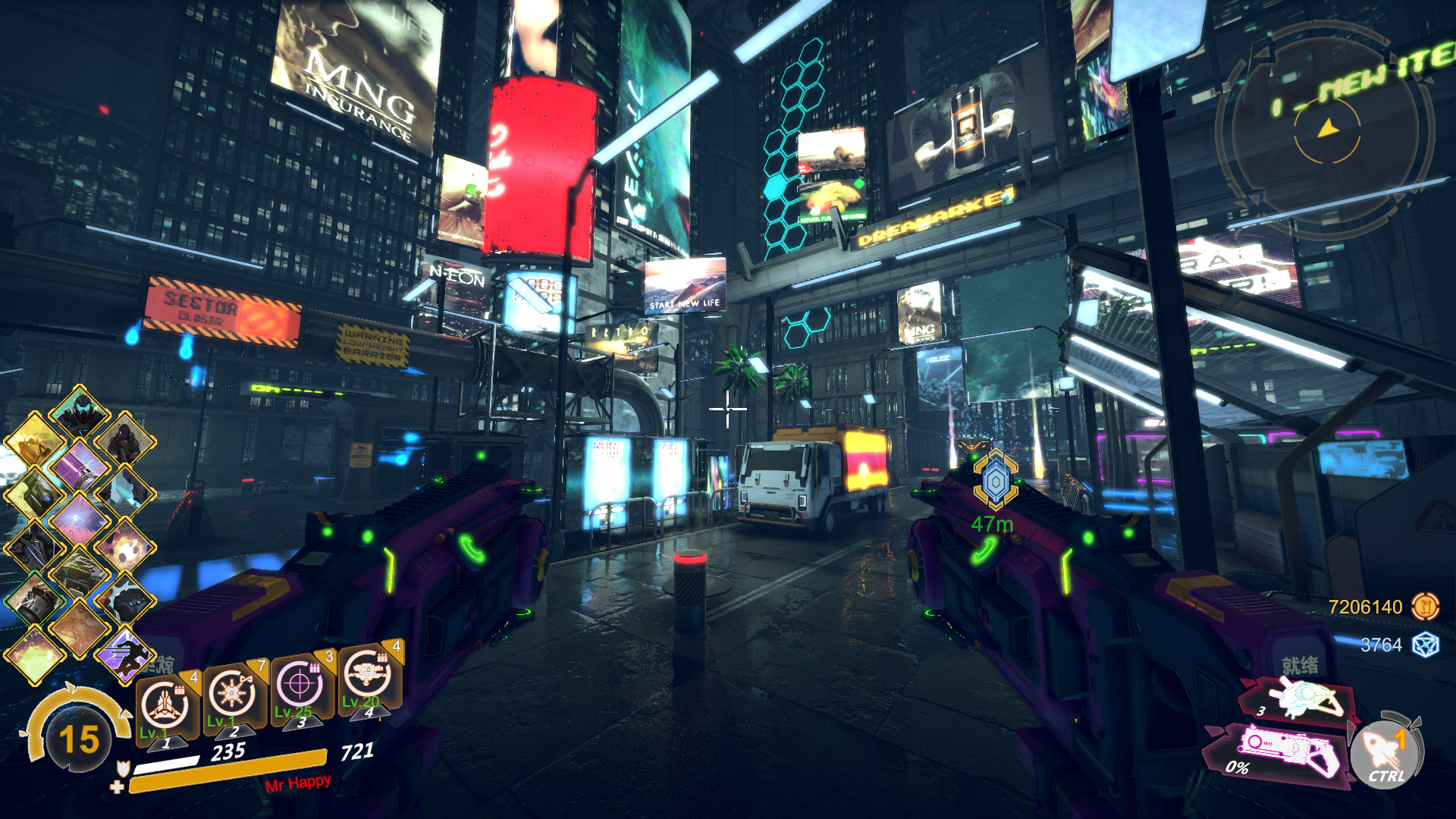 → Earn experience, level up and invest points into stats and professional skills.