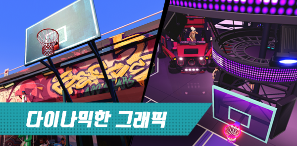 3on3 FreeStyle 만의 스타일과 언리얼 엔진 4로 탄생한 실시간 길거리 농구 게임 코트로 더욱 생동감을 느껴보세요.