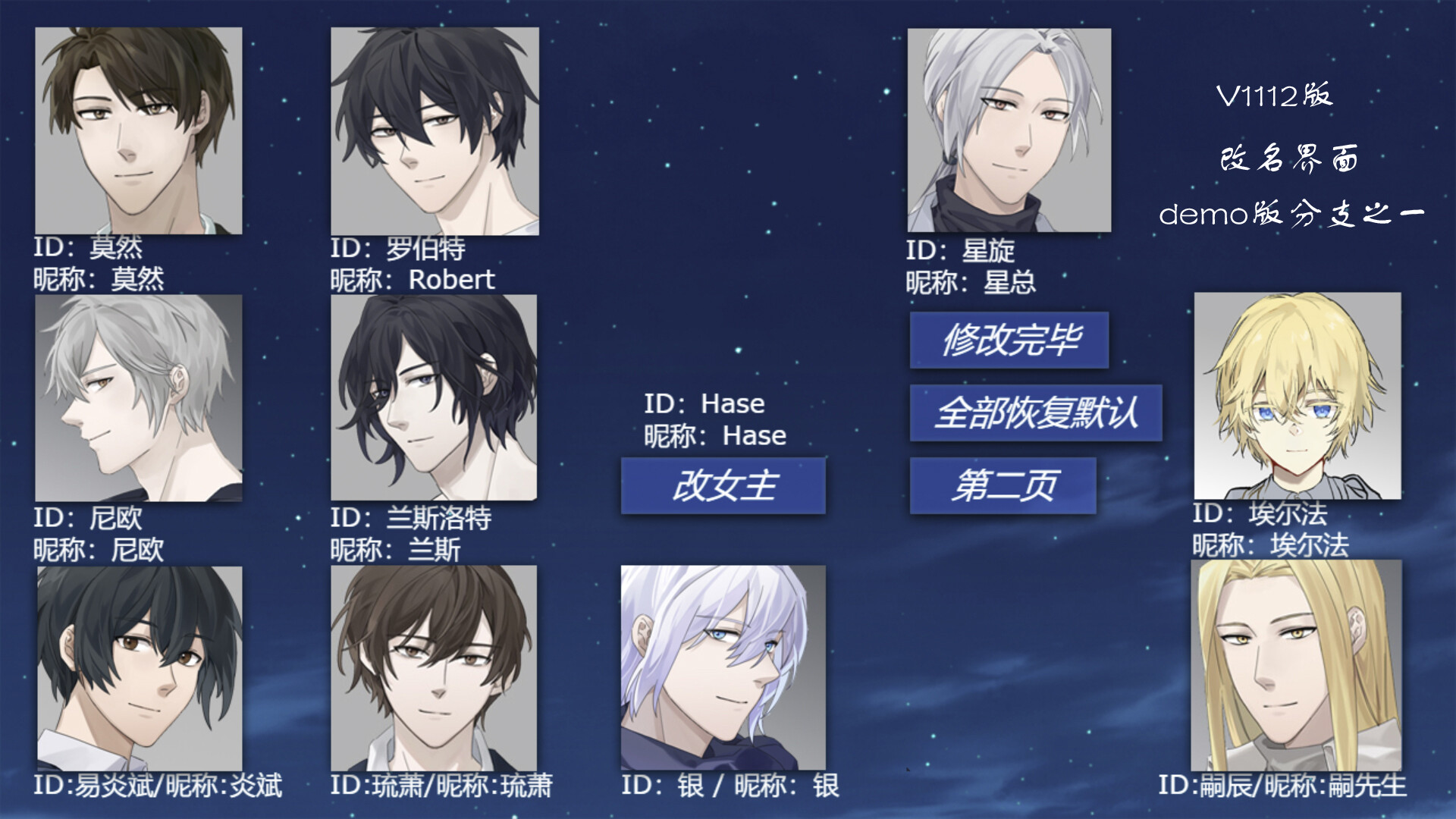 Currently, the storylines for these six characters: Mo Ran, Yi Yanbin, Yin, Lance, Liu Xiao, and Si Chen, are translated. The translation was done by me and has not been professionally edited (beta-read). To access it, you need to manually select the "VersionEnglish" branch.