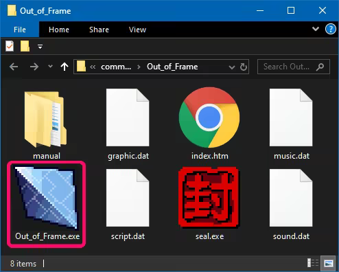 Then double click on the Out_of_Frame.exe file to launch the game.