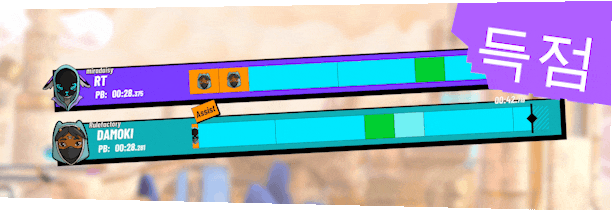 결승점에 먼저 도달하거나, 현재 시간 기록을 깨거나, 코인을 모으거나, 다른 플레이어를 암살하면 점수를 딸 수 있습니다. 직접 설치한 함정에 죽지만 마세요!