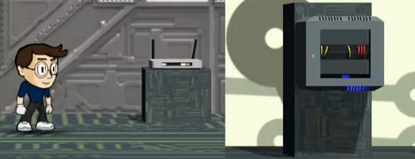 Updating starts with launching router but it is disrupted. You have to find 10 switches all over the level and launch them to fix the network.