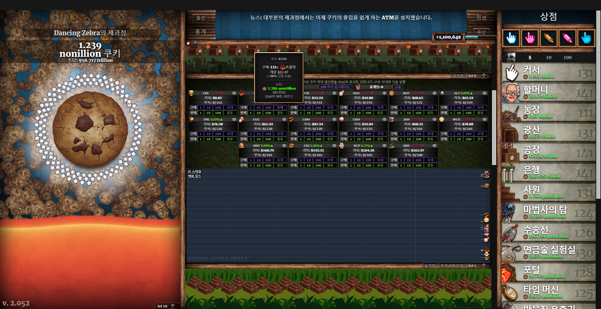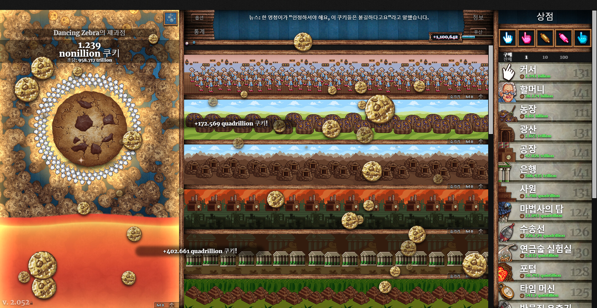 이 게임의 쿠키 생산량이 현실이 된다면 전세계 기아 문제의 효과적인 해결 방안으로 주목 될 수 있지 않을까요🤔🤭
