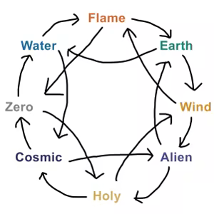 Flame: A strong offensive type, it sports high damaging moves, and features dark orange colors.