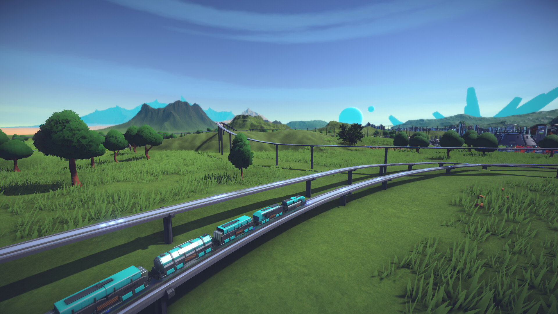 InfraSpace simulates every. single. car. Each resource you ever produce needs to be transported to a factory for processing and each product needs to go to a habitat for consumption. Your road network can handle a lot, but without your oversight it will grind to a halt and drown in traffic eventually. Build highways, roundabouts, and multi lane roads to ensure the production heart of the city keeps beating.Trains, Pipes, and Cargo Lifts