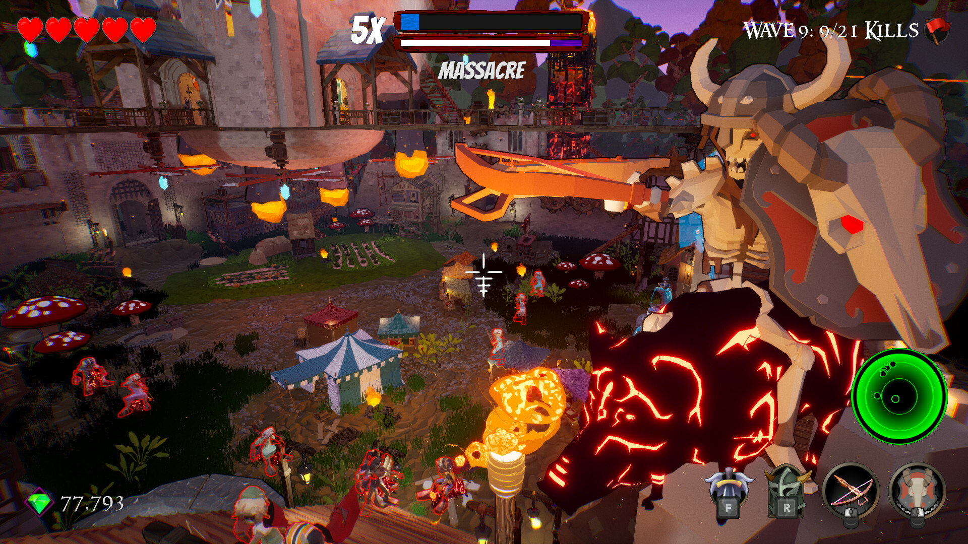 Survive Horde Mode - Snipe endless waves of wacky enemies amidst a floating castle. Unlock powerups and animal mounts in Robin Hood's greatest challenge yet.