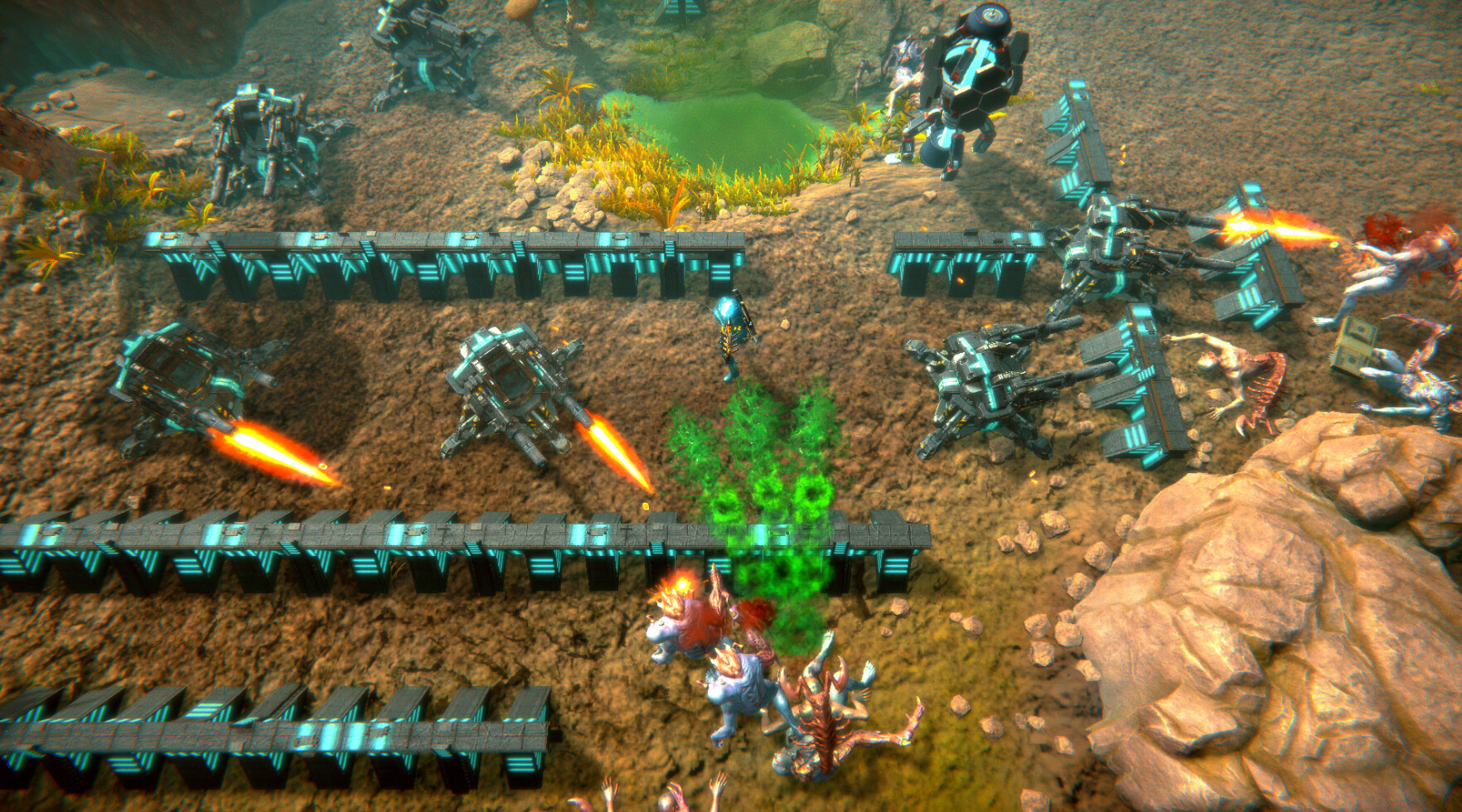 Create your base filled with different turrets and buildings such as cloning unit, radar and many others. Additionally use indestructible nodes that you can use to build intricate maze for your enemies and block off strategic paths. Your planning and foresight will help you live longer.