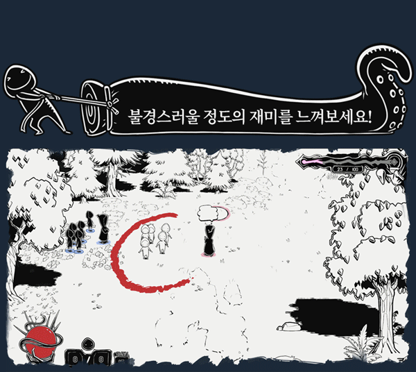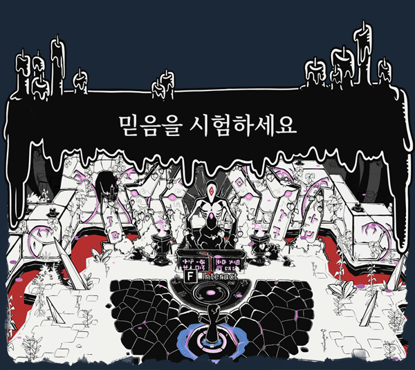 예배로 인해 세상이 더욱 과감하고 불경해지며 테마와 톤이 강렬해집니다. 우스울 정도로 무시무시한 피의 의식부터, 악하기 그지없는 동시에 활기 가득한 희생까지. 흑백의 잉크 스케치 스타일로 개성 넘치는 세상에 빠져 보세요. 이따금 생기 넘치는 색채와 손으로 그린 애니메이션도 만날 수 있습니다. 귀여우면서 개성 강한 아트와 그를 잘 살린 블랙 유머까지, 악행을 저지르는 데 이만큼 쾌감을 느끼기도 쉽지 않으실 겁니다. 음울하지만 귀엽고 웃기면서 무시무시한 세상이 여러분을 기다립니다.