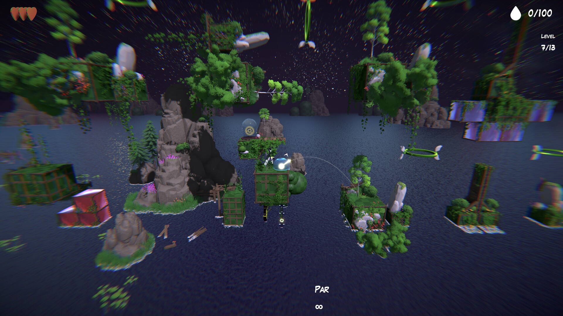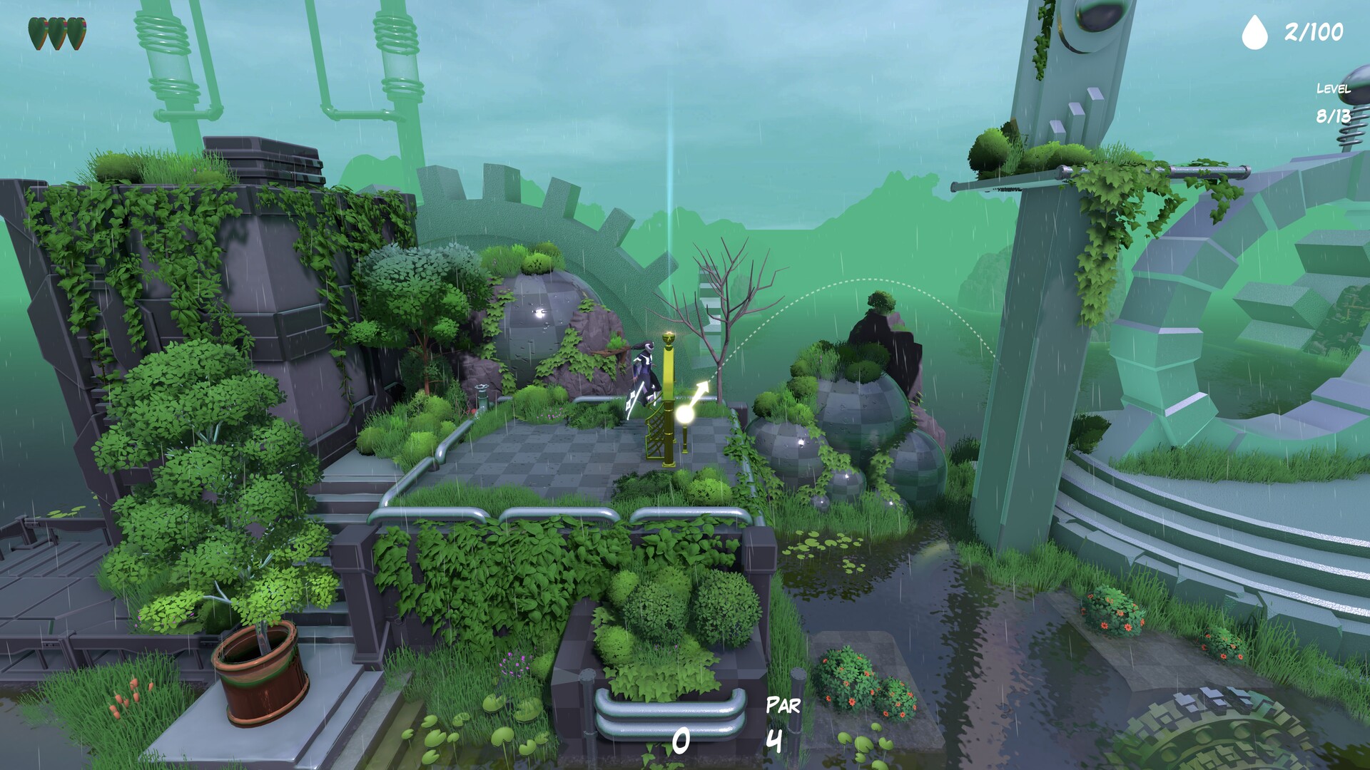 Shots can cling to jelly walls, bounce off bubbles, be propelled by explosions, and float on clouds. Giant flowers can suck shots in and spit them out. Living bushes can block the shots. Some puzzles even hide secret collectibles & lore tied to the game’s true ending.