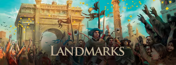 Landmarks provide new ways for players to score. Like Events, they are not Kingdom Cards. Many Landmarks only apply when scoring at the end of the game. In addition to counting up their regular points, players add some bonus based on the Landmark. A few are penalties instead - players subtract points from their score. Some landmarks award points throughout the game, these points are unlimited.