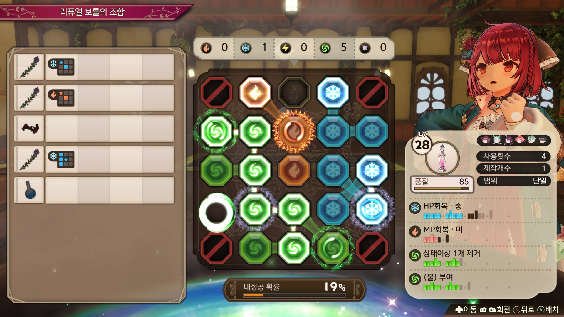 ※⑤~⑥번은 새로운 레시피와 촉매가 추가되어 스토리를 진행하면 수정의 휘정에 있는 노움에게서 구입할 수 있게 됩니다.