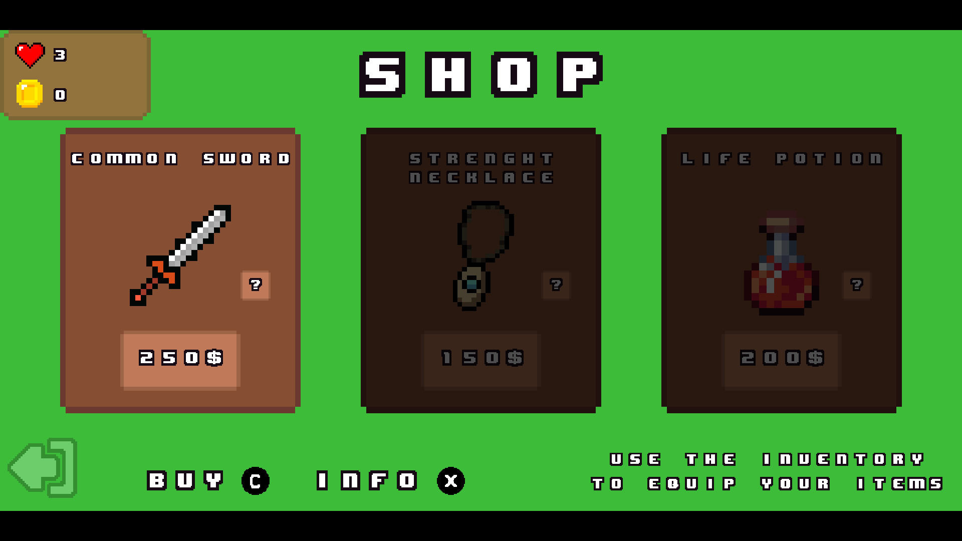 - 3 items to be purchased in the shop!