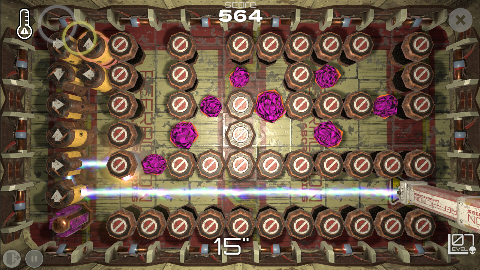 The objective of each test is simple. Drag and drop the available laser manipulation devices to split, redirect and absorb the laser death ray and eliminate the alien blob like waste product artefacts.