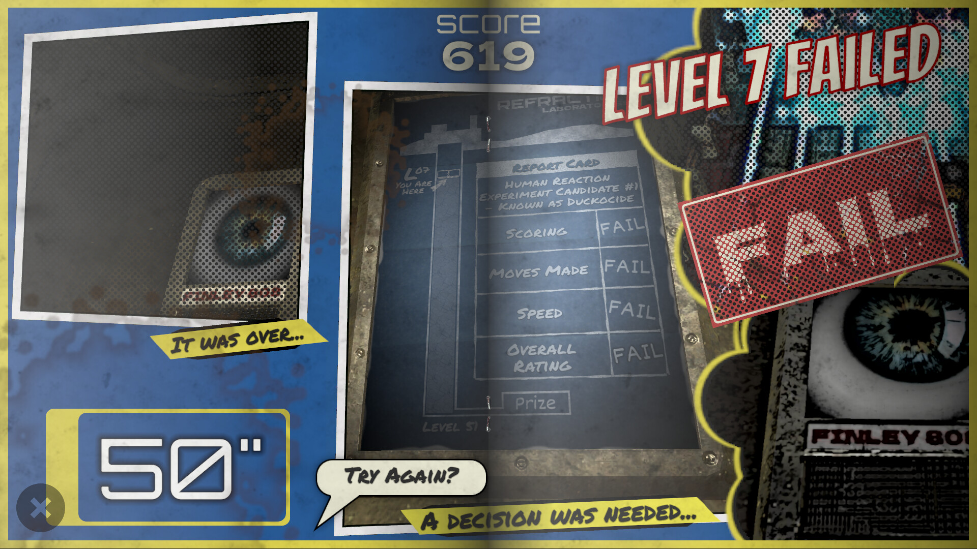 Pit your wits against the maniacal artificial intelligence Finley in this reimagining of the unknown and very secret 1960’s human perception tests carried out in top secret hidden bunker laboratories.