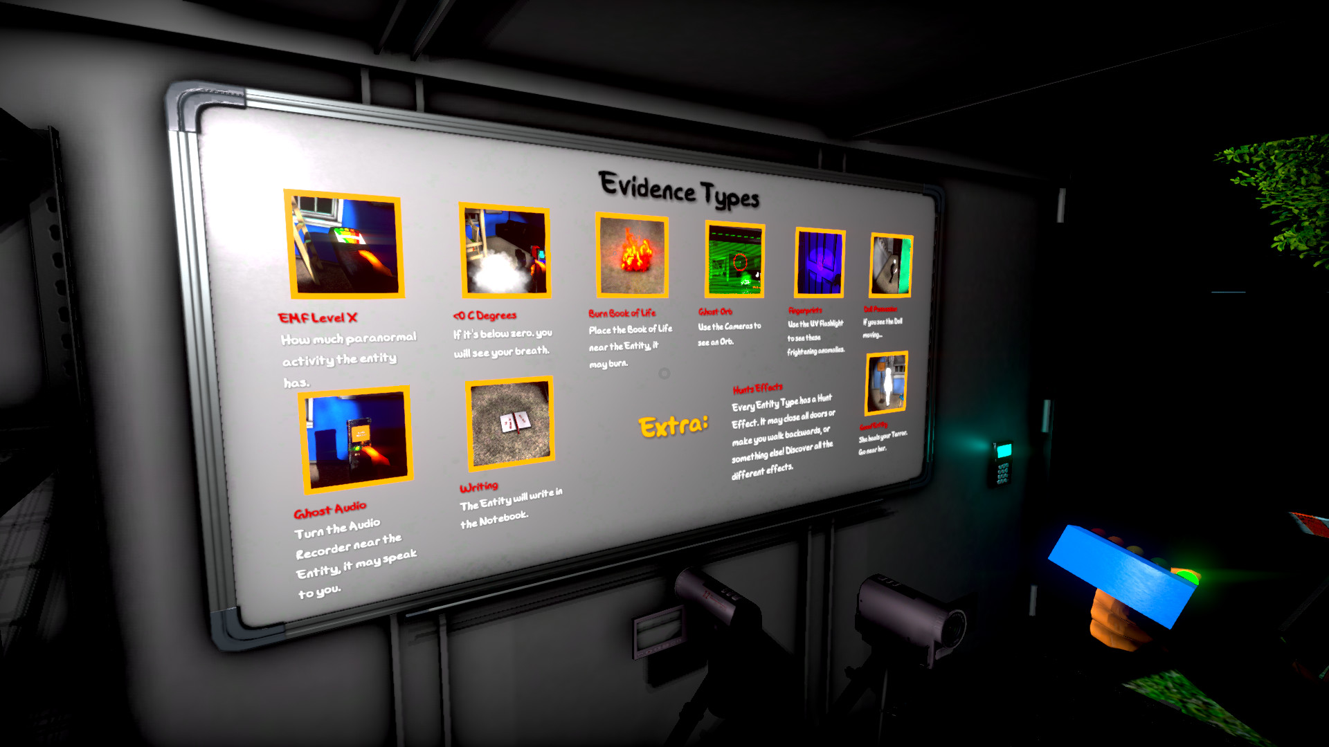 라디오를 사용하여 팀과 소통하고 새로운 증거를 찾으면 이를 공유하세요. 함께 진실을 밝혀내고 존재를 잡을 수 있을 것입니다. 최대 4명의 조사자가 한 팀이 되어 임무를 수행할 수 있습니다.