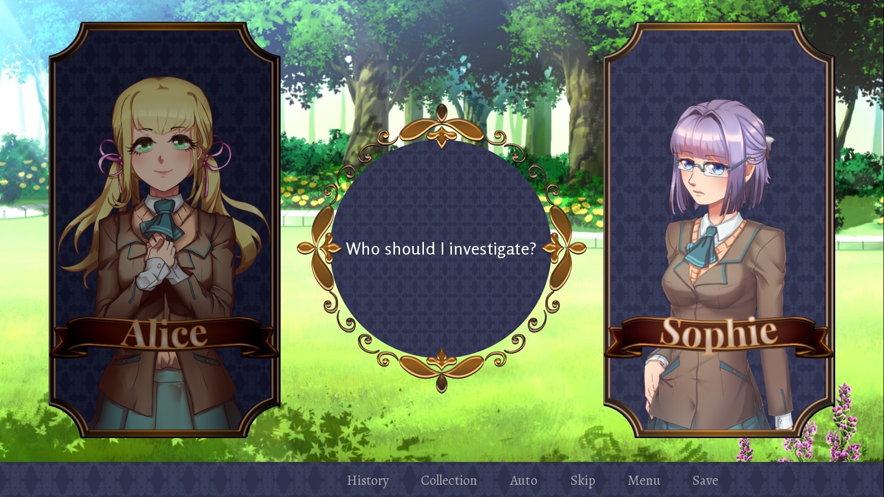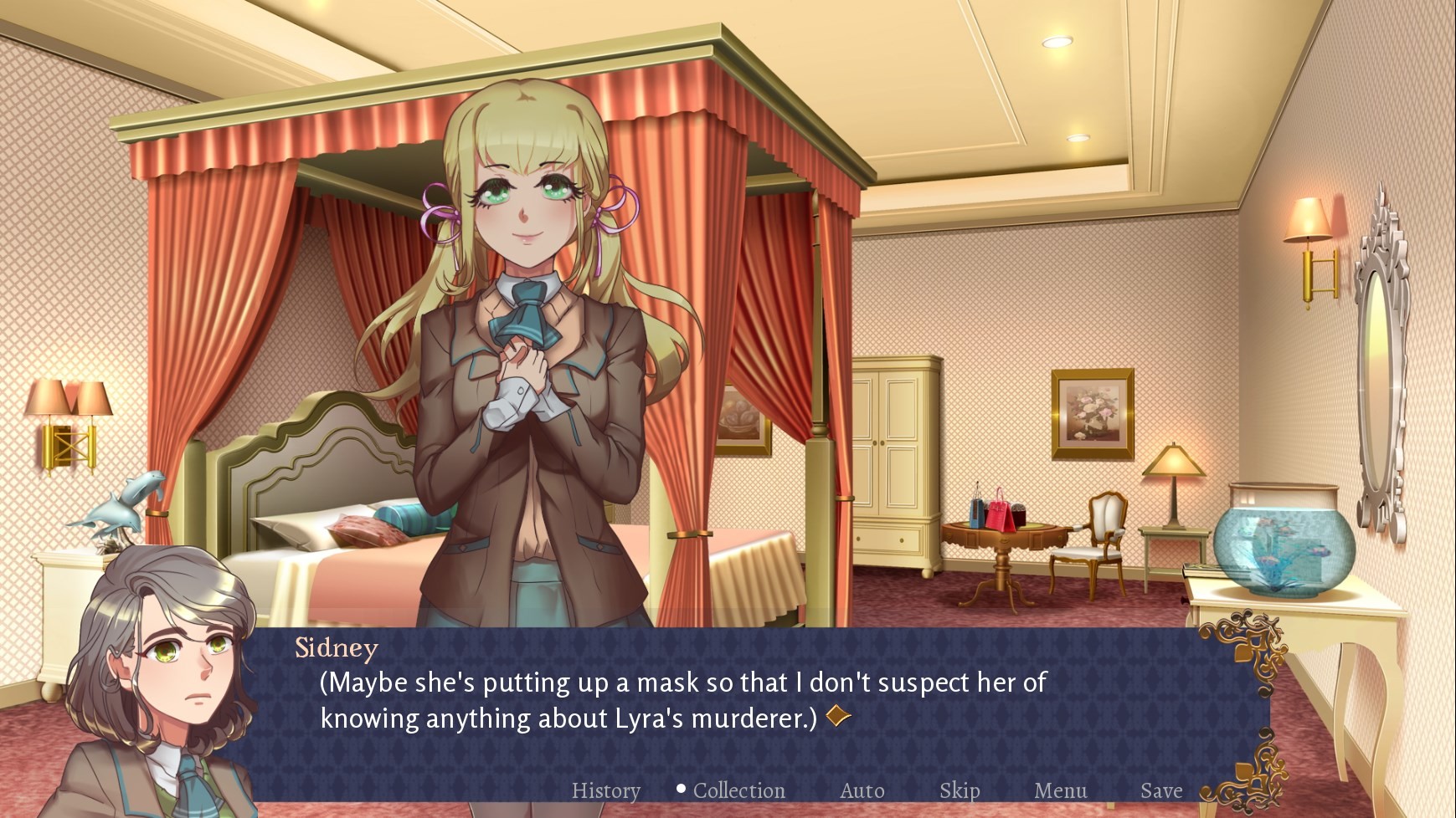 Choices matter and affect the 4 routes of the story. You find the truth - who had the motivation to kill Lyra? Or did Lyra have a secret that she was hiding?