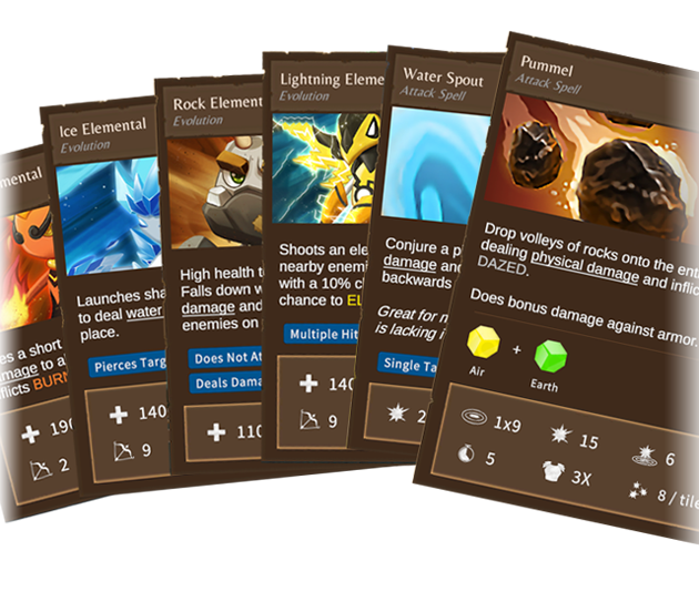 Choose from more than 40 spells, evolutions and combos. From powerful destructive spells, to tactical spells that stun, interrupt, block and push enemies for ultimate lane control.