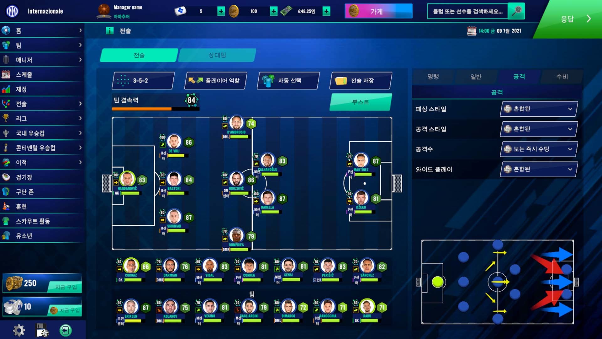 ★ 각각의 게임을 위해 이상적이 포메이션과 라인업을 만드세요.
