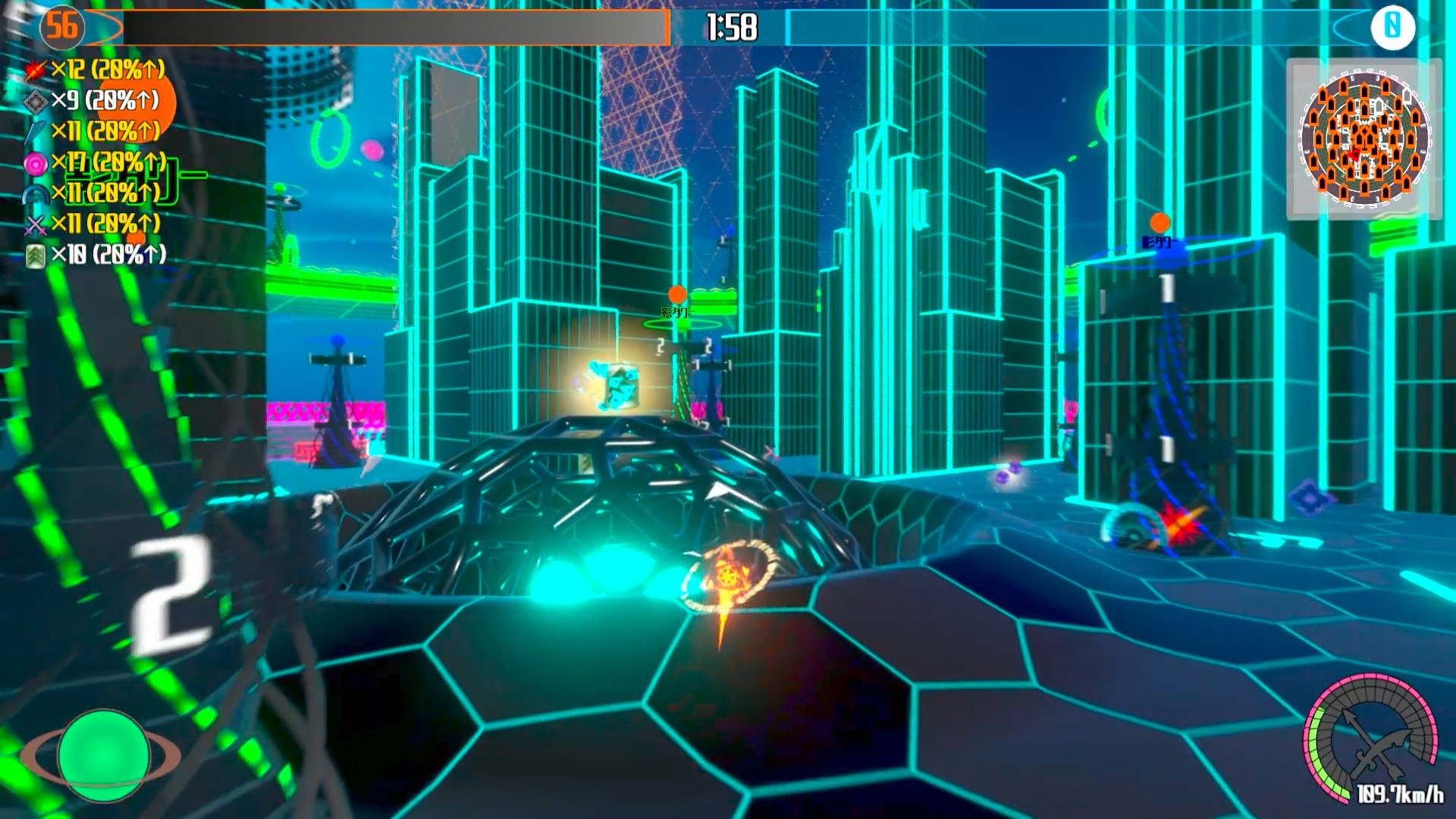 Players ride on a machine which moves automatically and occupy "Tower" which are placed in the stage whose concept is the near future.