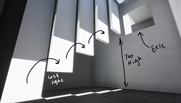 By changing your gravity when moving to the illuminated walls, you need to get to the exit from the room. In order to maintain the altered gravity, one must continue to move along the illuminated surface without stepping on the shadow. Not all light areas will be within walking distance, they will be separated either by a shadow or space. If two areas of light are separated by a shadow, then the shadow must be jumped over. If a large space separates the desired area of light and the player, then the player needs to stand on a certain illuminated wall, which will allow the player's gravity to turn in the right direction, after which the player will be able to fall to the desired area of light.There are parts of the world that move, so there are cases when the player needs to calculate his trajectory and timing before jumping or falling somewhere.