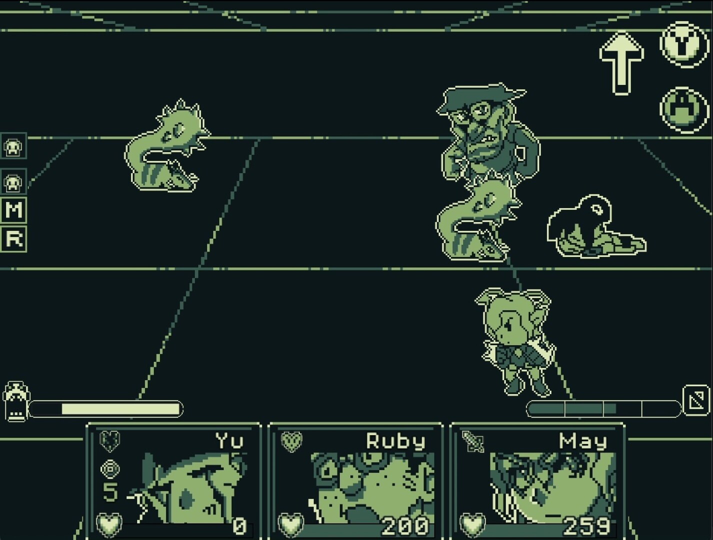 KAZAK is an RPG inspired by the 90s, with battles inspired by the Mario & Luigi RPG series. There are no random encounters, with enemies being visible on the map and you can interact with them to gain an advantage in battle. There are 3 playable characters, each with unique strengths and weaknesses. Equip up to 4 skills per character to use in battle. Each skill has advantages and disadvantages such as raising or lowing stats, and enemies have weaknesses themselves that can be exploited. There is no MP! Battle revolves around the mana gauge, inspired by the fighting game genre. Attack or successfully avoid attacks to build meter and defeat your foes with super moves, while keeping their mana meters down or else you'll be vulnerable to a foe's super move.