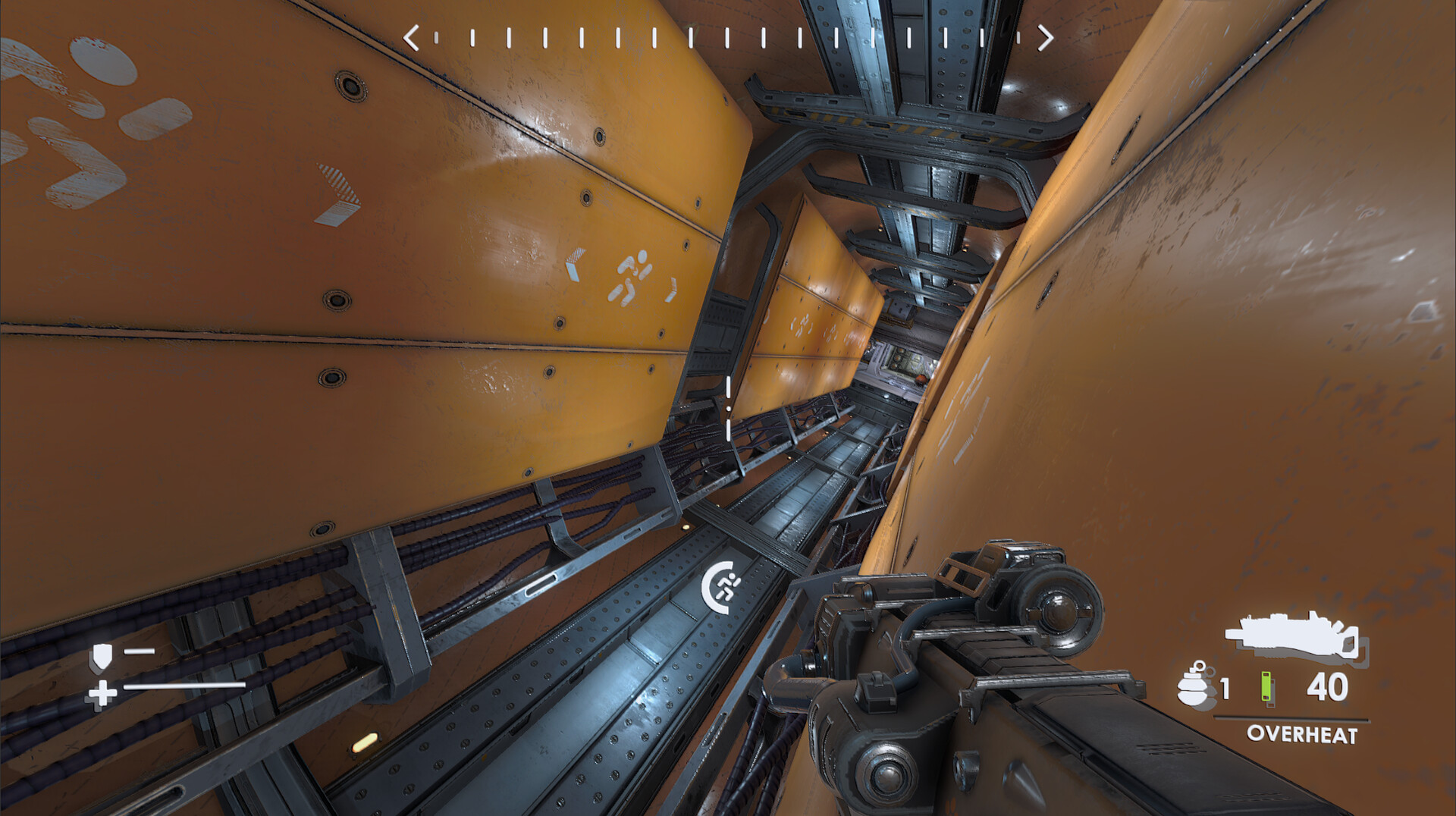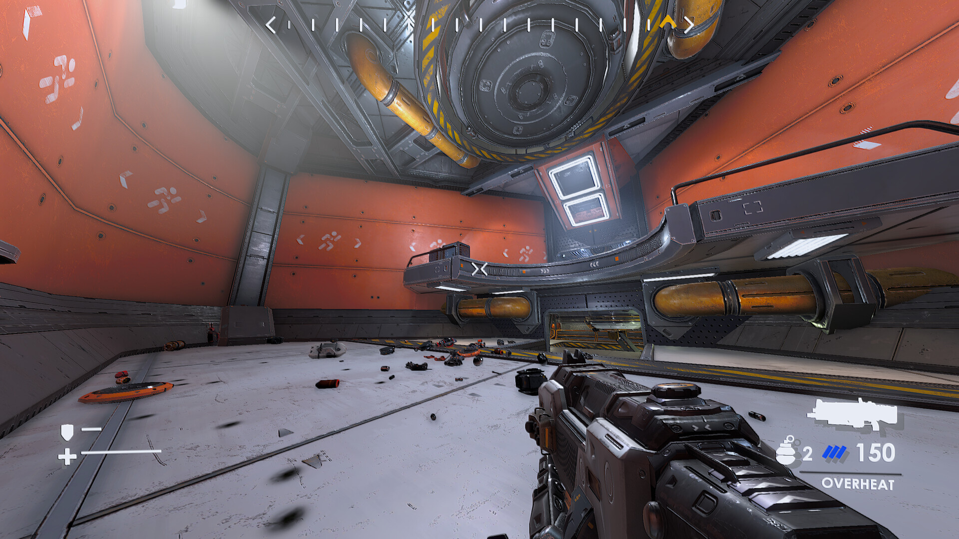 Fast gameplay, well-designed weapons and shooting.You can run along walls, overcoming obstacle after obstacle and destroying robots with maximum efficiency.