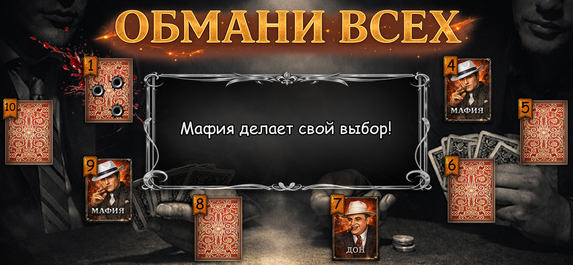 Now it is not necessary to gather with friends to play Mafia. Play your favorite game online. You can choose the role you want to play. Background music and atmospheric special effects will pull you into the world of "Mafia", and the rating system will help determine how professional you are in persuasion skills.