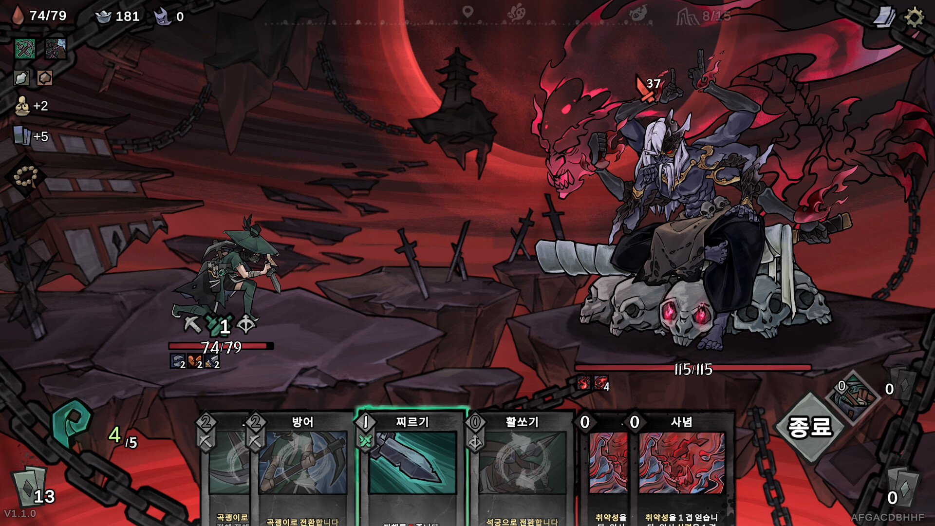 降妖散记, 영문은 요괴 헌터. (24.03 갱신) 인간과 요괴가 등장하는 무협 배경, 하지만 일부 요괴들이 문제를 일으키고 있는지라 해결해야 겠네요~하는 내용의 덱빌딩 로그라이트 게임. Slay the Spire의 대성공 이후 세기 힘들 정도로 수많은 아키타입들이 쏟아져 나왔는데 문제가 있다면 1. 자신만의 특색이 부족하거나 2. -지나친- 양키센스 아트가 들어있거나. 이 게임의 경우 동양화풍에 Anime를 섞음. 3. 이건 좀 아니지 않냐? 싶다거나. 하는 게임들이 대부분이였던지라 웰-메이드 게임을 찾는 건 해변에서 10cm 짜리 바늘 찾기에 가까웠는데 이 게임이 그 바늘 중 하나라 칭할 수 있다고 생각함. 캐릭터들의 특색이 살아 있는 것도 좋았고. 그저 술을 살 돈을 벌기 위해 요괴를 잡아 근절국에 넘기는 마검 사용자 모산, 수행 도중 몰래 하산한 칼보다 발명에 관심이 있는 어린 도사 추안, 평소에 장난치는 것을 좋아해 지루함을 해소하고자 요괴를 사냥하는 마녀 아지. 요괴들의 침략에 홀로 탈출한 용궁의 공주 아오유. 그저 다 귀찮은 모산과 겁에 질린 추안과 항상 여유로운 아지 등과 그리고 귀여운 상점 주인 (중요) 하지만 이러한 아키타입들이 그러하듯 일부 요소에서 완전히 동일한 옵션들이 존재한다라 싶은 건 피하기 힘들다 생각하고.. (전투 후 2 회복 같은 아이템 등) '모산'의 경우 아이언 클레드처럼 자해 및 아머스태킹이 가능한 구조지만 피니셔와 운즈 등 추가 기믹들이 있고, '추안'의 경우 대나무총과 각종 폭발물을 사용하는 캐릭터. '아지'의 경우 소환, 독 스태킹 등이 가능한 구조. '아오유'는 여러 버프들을 활용하며 마법과 스트레스에 기반한 용 Slay the Spire도 EA에서 출발했었고, 이 게임도 마찬가지로 EA. 요즘 EA들이 그러하듯 개발속도 자체는 늦어지고 있으나 (너무 짧게 잡음) 꾸준히 패치를 하고 있으며 현 버전기준으로 4 캐릭, 3 챕터, 20 요기(승천)이 있는지라 플레이 자체는 큰 문제 없으며 '과한 가격'을 책정하지도 않아서 추천할 수 있는 게임.