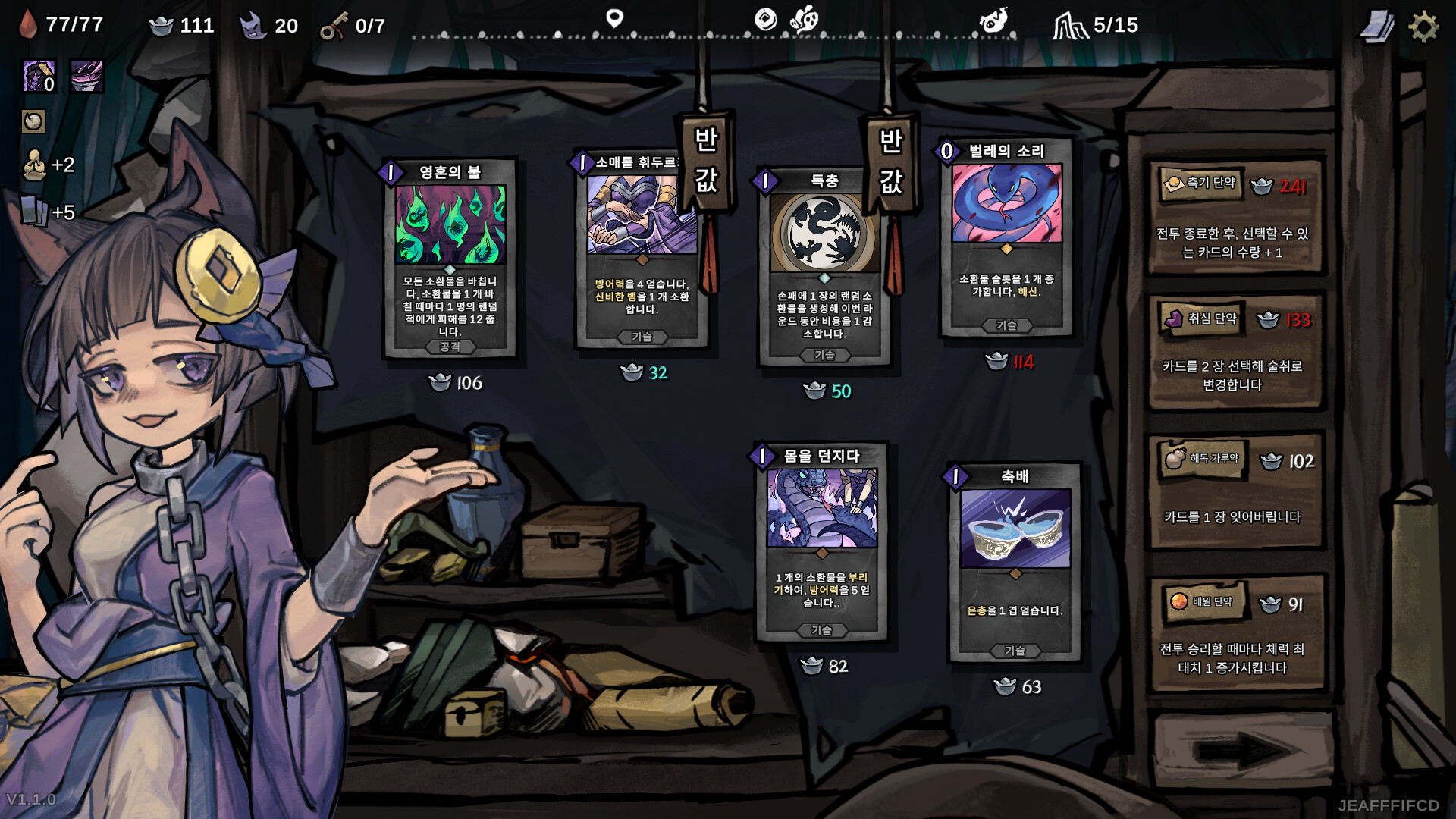 중국풍 무협 세계관의 로그라이크 덱빌딩 게임