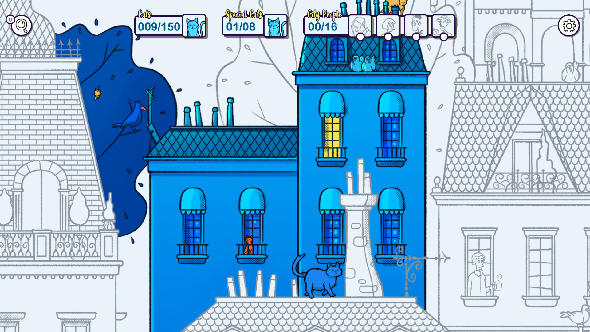 크고 멋진 일러스트 속에서 고양이를 찾아보세요. 짧지만 즐거운 재미를 선사한답니다! 아름다운 단색 일러스트를 감상하며 힐링하고, 고양이를 전부 찾아 최종 컬러 일러스트를 완성하세요.