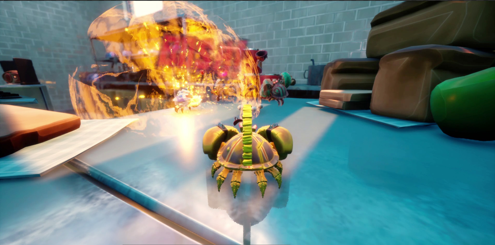 - ‘Crab-Fu’ shell smashing combat moves, jab, uppercut, dash, flip, dizzy, ground pound, carry, throw and more…