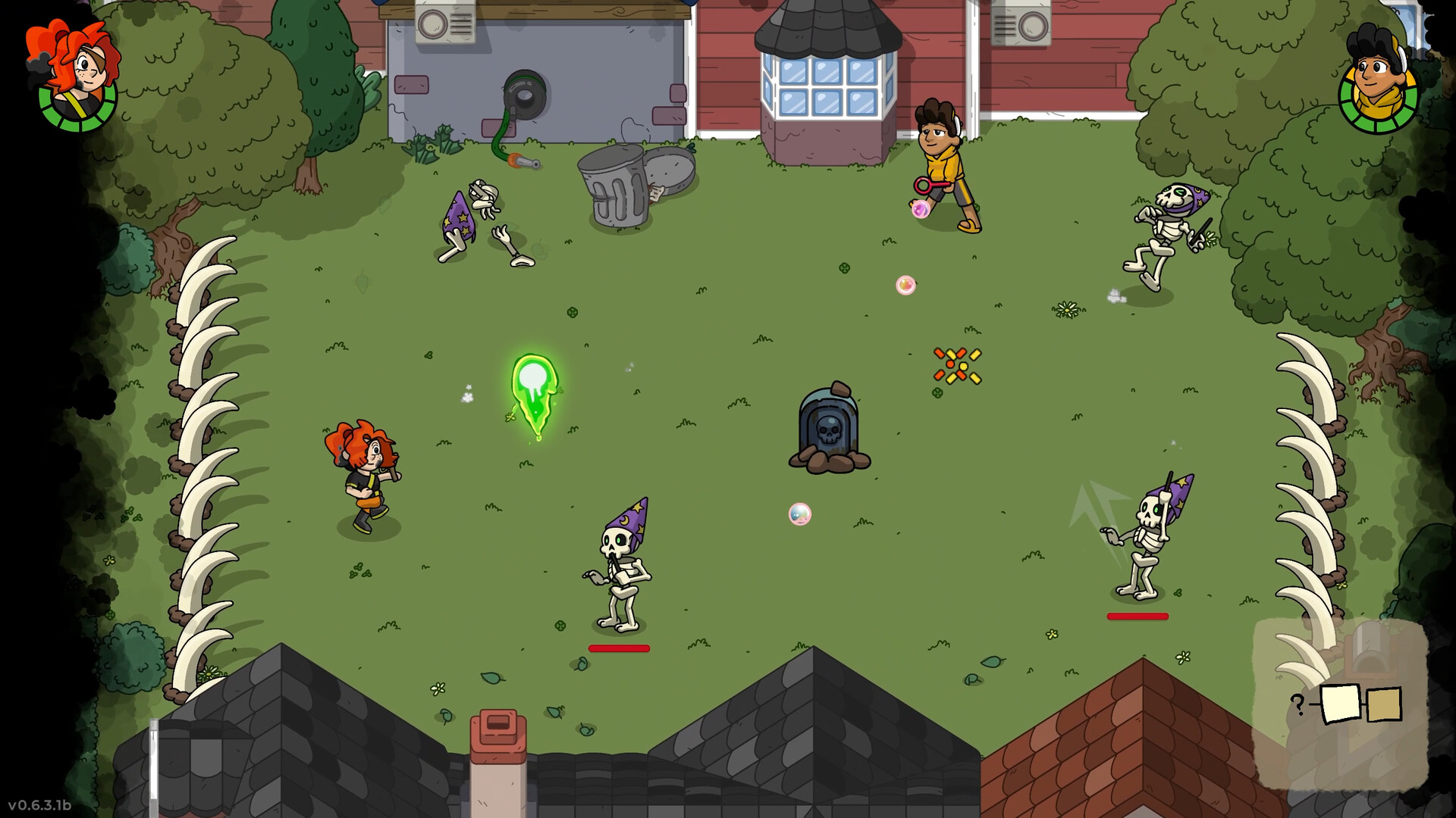 해골들이 침입하고 당신의 유일한 방어 수단은 토스터와 닭입니다! 귀여운 해골들로 시달리는 땅을 통해 기발한 모험을 떠나보세요! 이빨이 나올 듯한 악당들에 맞서기 위해 이상하고 신기한 무기 시너지를 발견하세요. 그 길에 당신을 돕게 될 영웅들의 무리를 모아보세요 - 당신은 용기를 내어 강렬한 계획을 세우고 세계를 구할 수 있을까요?