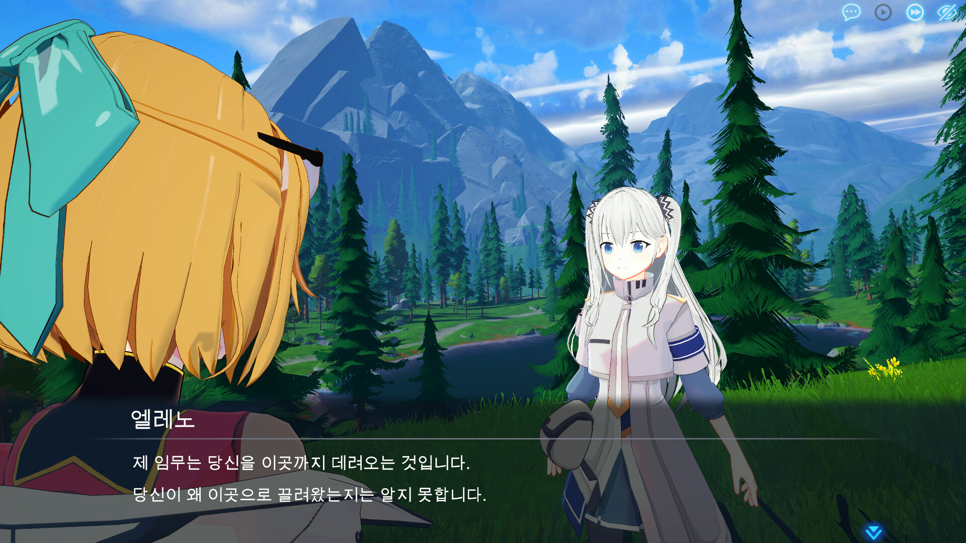 에레노(가운데): 요리의 시종으로서 함께 아르카디아에 온 범용 지원 AI 시스템.