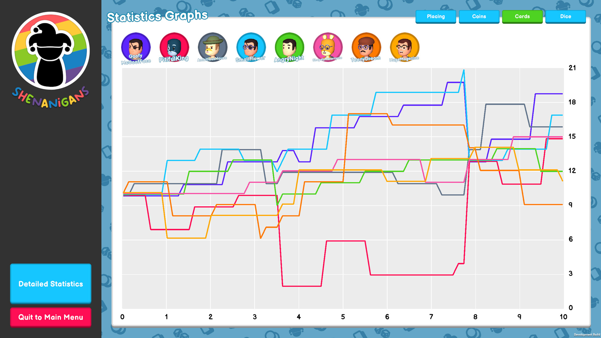 Shenanigans is a chaotic party board game for you and your friends, where anyone and anything can change the course of the game at will. Don't let pesky rules stop you from winning. Just change them in your favor!