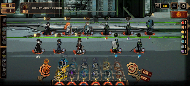 전투는 아군과 적이 차례를 기다리지 않고 동시에 진행됩니다.
