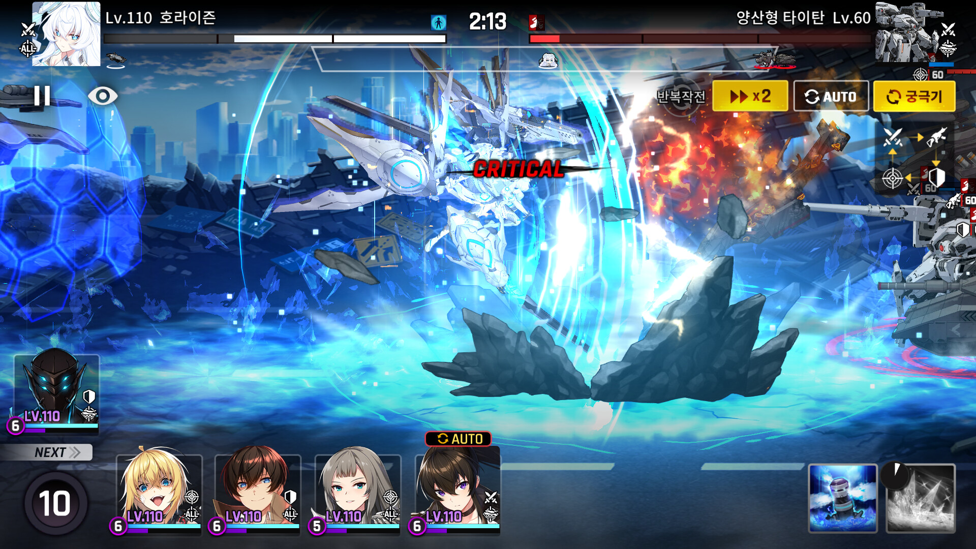 멋진 모션과 스킬컷인으로 이루어지는 박진감 넘치는 라인배틀 시스템!화려한 연출과 함께 특별한 전략으로 소대의 승리로 이끌어보세요.