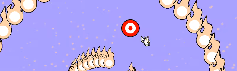 In this game, you move using just the mouse to avoid any and all projectiles that come your way. After a few seconds of surviving the bullet pattern, a target will appear. Either wait out the attack timer or click the target to advance to a new, randomly selected bullet pattern!