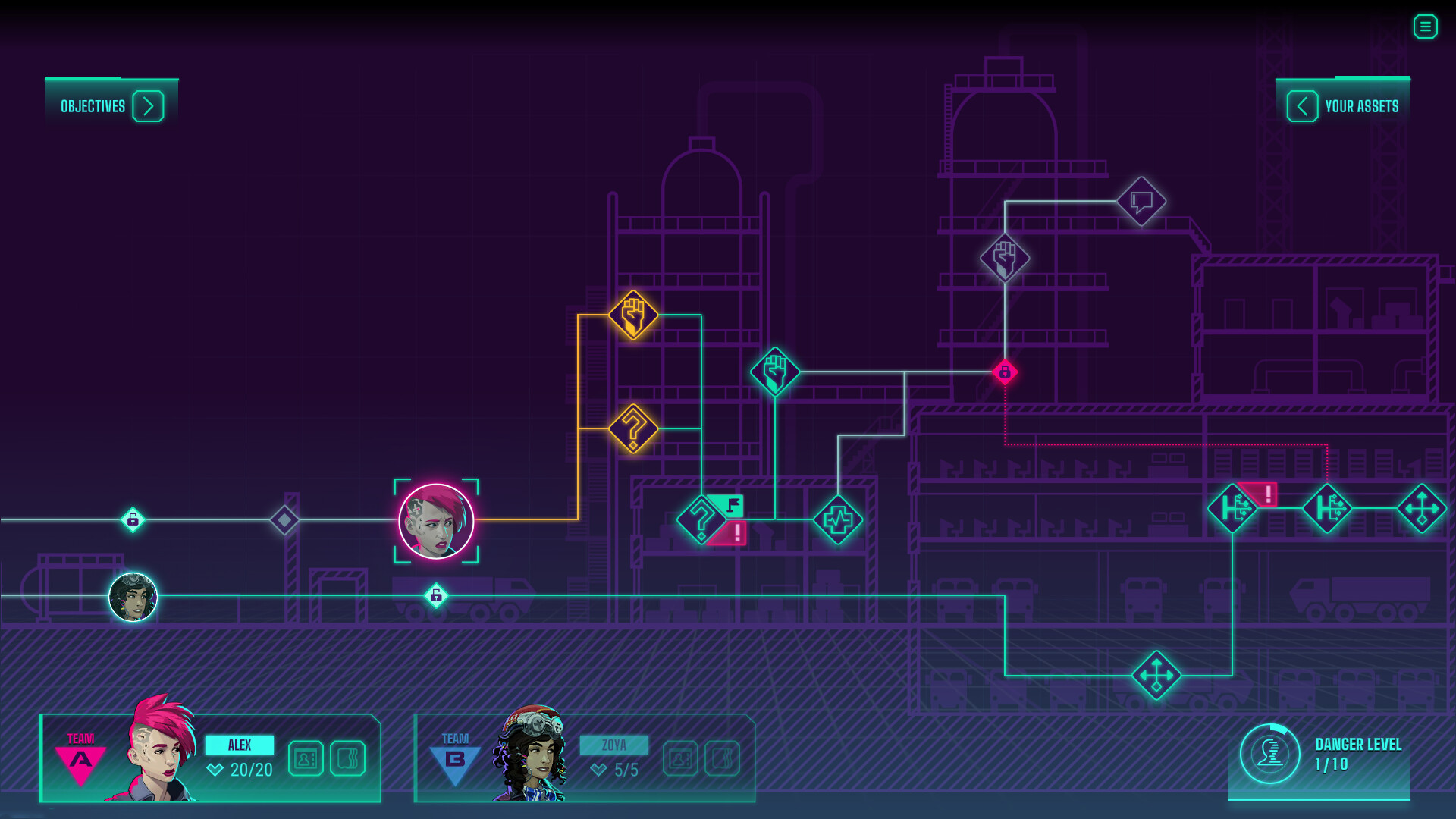 If stealth is not an option, fight guards and automated security systems in tactical card-based battles. Instead of traditional skill trees, customize your character by assembling a deck of cards tailored to your chosen strategy.