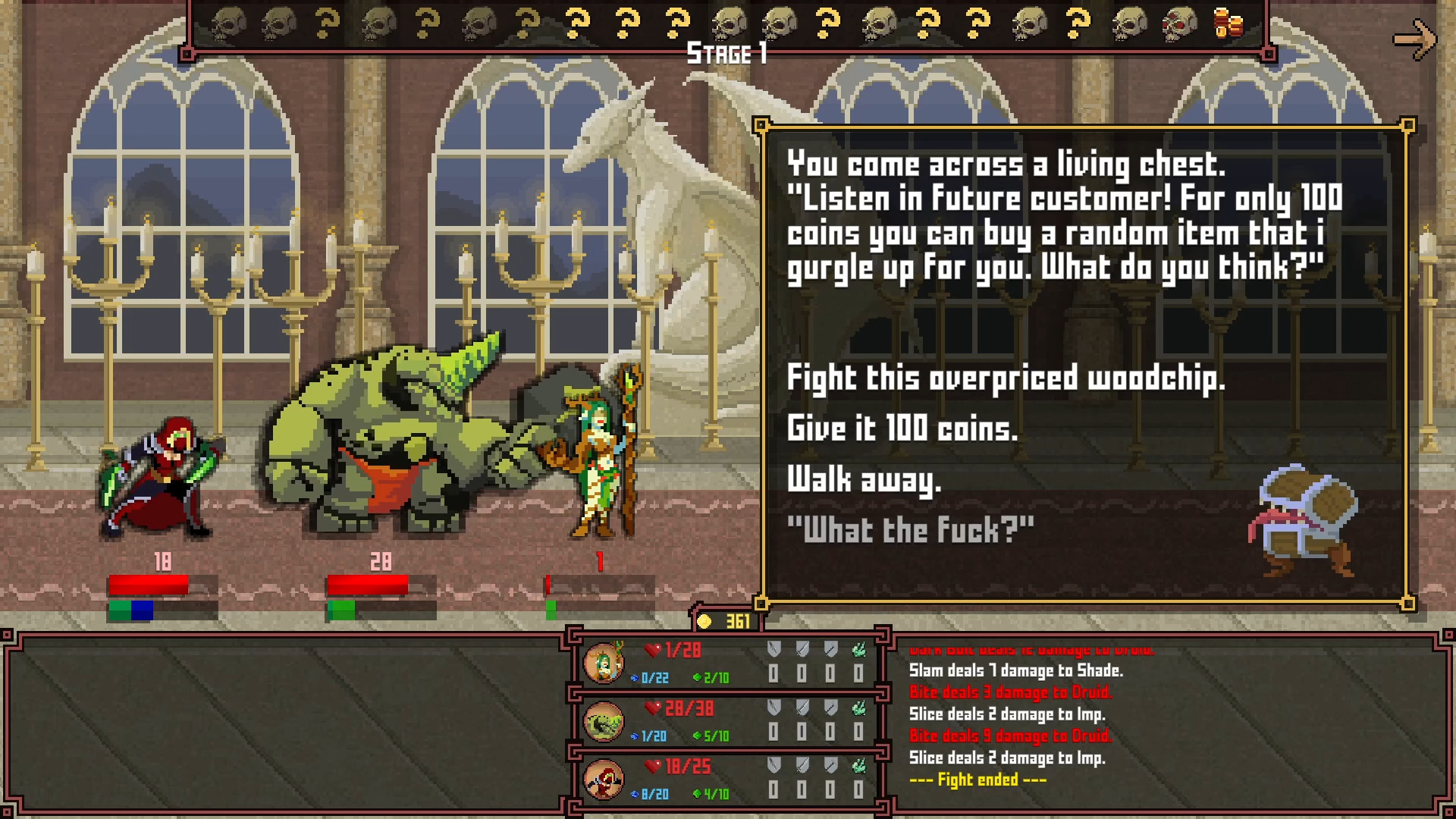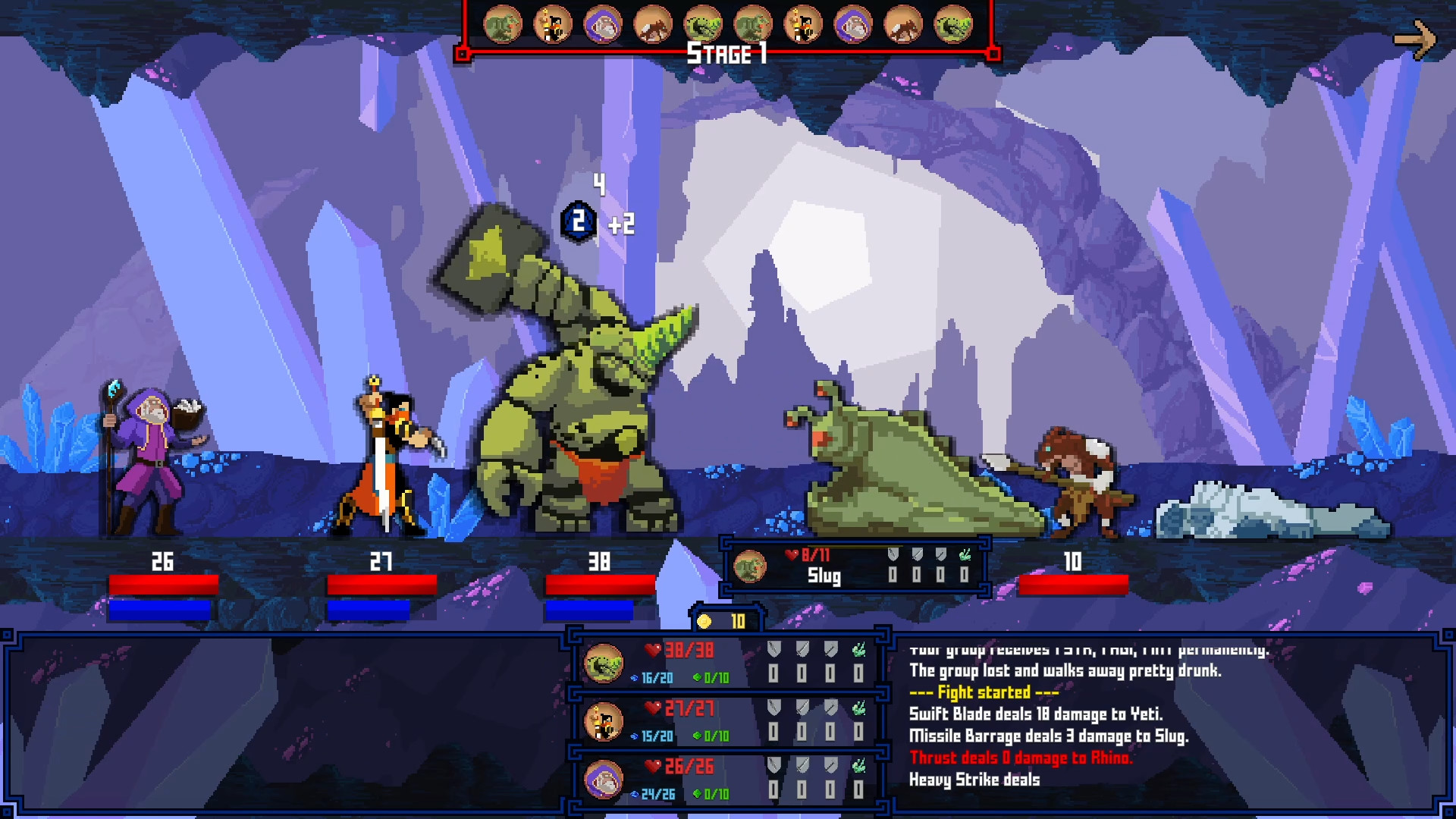 • Encounter random events, fight enemies until you reach the boss of the stage
