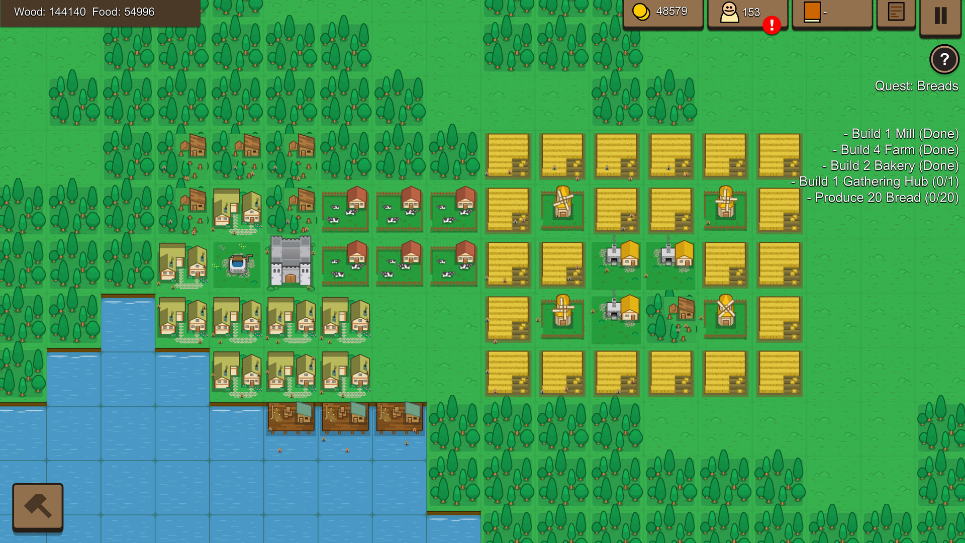 The Kingdom needs people to grow. These people have needs too. Basically, the mechanics of the game are about growing the kingdom and meeting the necessary needs with it.For example, fish should be consumed as food. Employees are needed to operate the Fisherman building, which provides this. Just like the automation buildings in Factorio need energy and this is provided by coal consumption, in this game, the buildings need employees, and these employees also need food, etc.