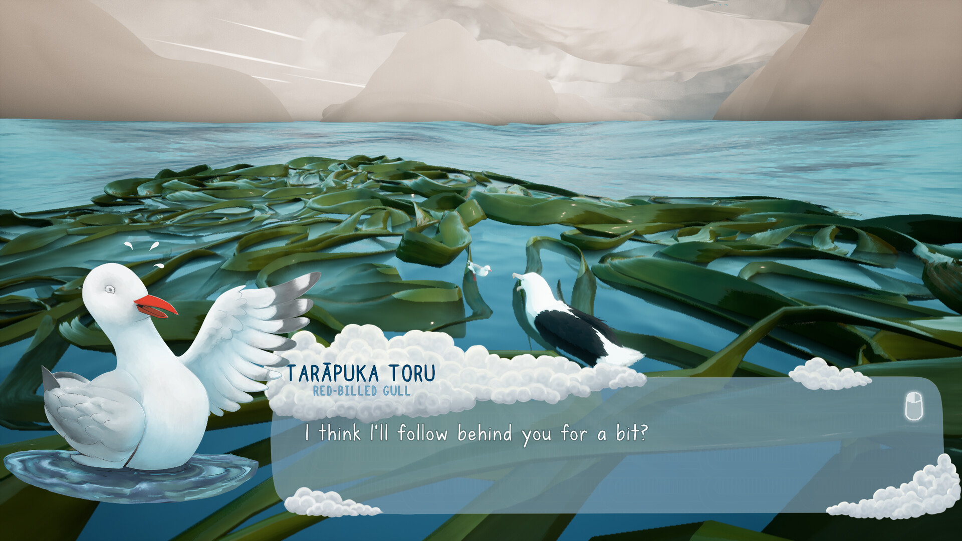 Trade kelp with creatures and gather birds into a flock who will follow you all the way to the end of your journey.