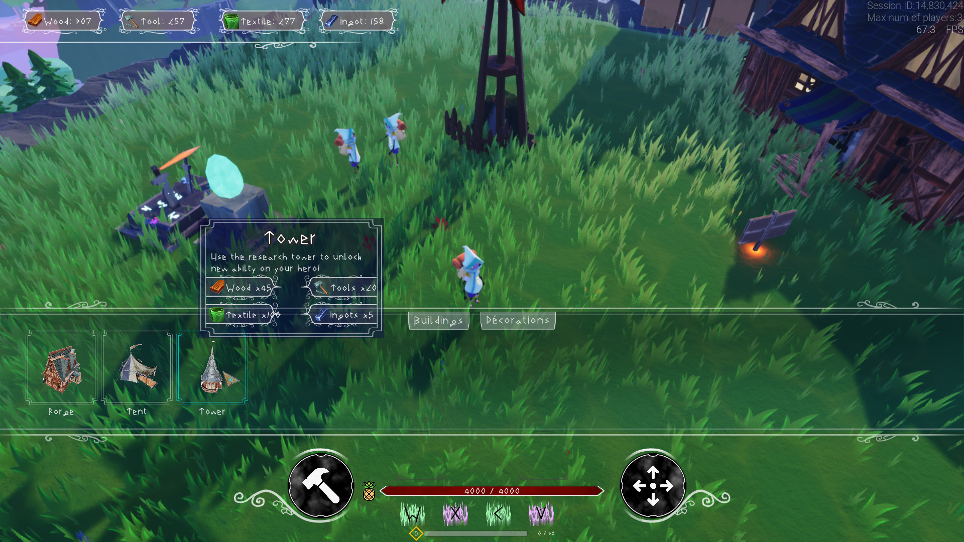Tech buildings give you access to new gameplay features such as tech tree for the research tower, quest and table games for the tavern, merging and crafting weapons for the forge.. etc