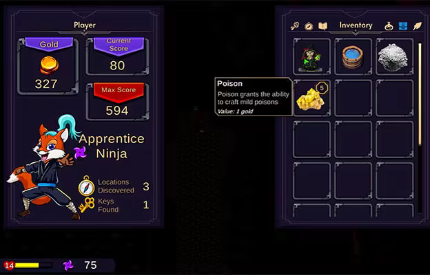 Play as Jaki, a clever ninja fox, in this diverse 2.5d RPG shooter. As a powerful ninja, wield your shuriken with deadly accuracy against bugs, beasts and robots as you dodge enemy fire and avoid dangerous hazards. Your path is perilous as you chase an escaped killer all the way to Chillgrave Keep. Beat your best score and become the best ninja in the land.