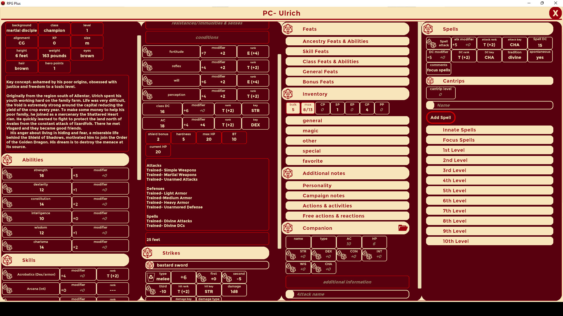 - Record your character's features in a digital sheet. You can select an advanced template for pathfinder 2nd edition and D&D 5th edition, or a simple and flexible table system