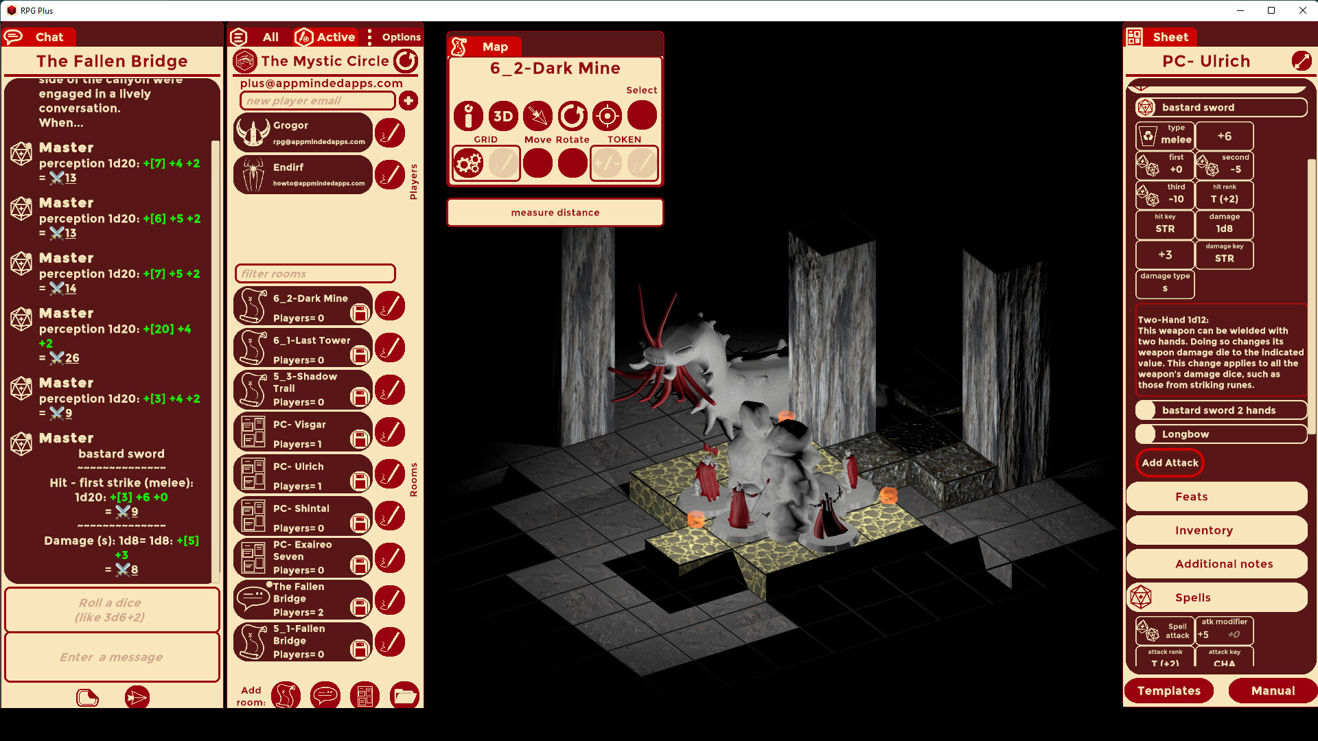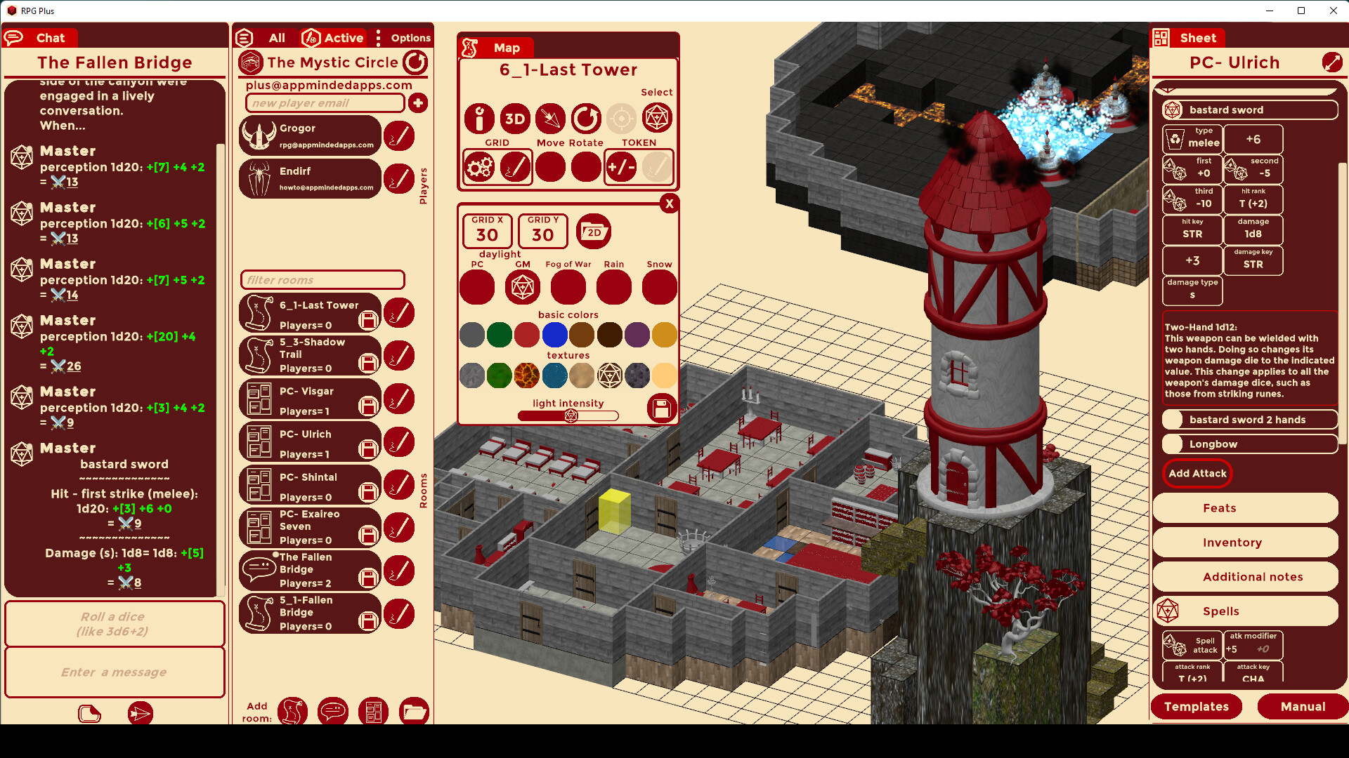 RPG Plus is a cross-platform virtual tabletop including chat, character sheet, 2D/3D map maker, and campaign manager for every kind of role-playing game, like D&D and pathfinder. Give your virtual TTRPG adventure a new dimension. Now it's your turn to roll RPG+!