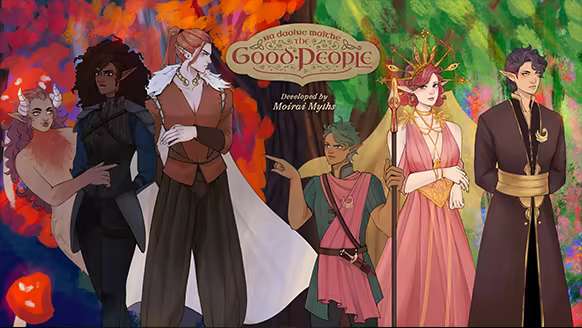 The Good People (Na Daoine Maithe) is a lore-rich and choice-driven romantic visual novel inspired by Irish mythology. Play as an Irish tenant farmer from the mid-19th century, whose path becomes inexplicably entwined with fairy affairs after getting robbed by the roadside and lured into the mythic and war-torn world of Tír na nÓg: A once unified land, now divided into the Seelie and Unseelie Courts. Will you escape with your stolen belongings? Or does fate have something else in mind?